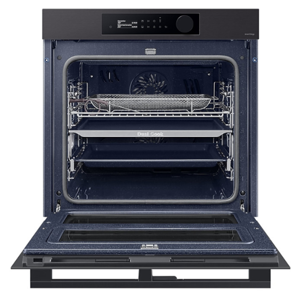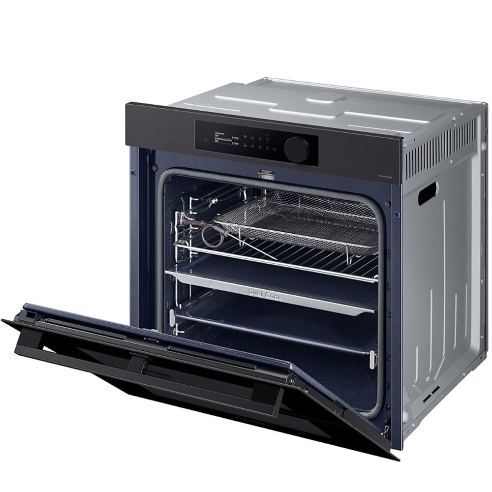 Samsung Series 5 inbyggnadsugn med Dual Cook Flex och 76 liters kapacitet ger maximal flexibilitet i köket med två separata ugnszoner som kan användas oberoende av varandra eller som en enda stor ugn. Den flexibla ugnsluckan gör det möjligt att öppna endast den övre delen för snabb åtkomst utan värmeförlust, och genom att använda enbart övre zonen kan energiförbrukningen minska med upp till 25 %. Natural Steam gör maten saftig och mör inuti samtidigt som den får en krispig yta – perfekt för bröd, gratänger och rostade grönsaker – utan att du behöver någon särskild utrustning. Den moderniserade designen med LCD-display, touchkontroller och ett enda vred ger en intuitiv matlagningsupplevelse där de vanligaste funktionerna visas automatiskt baserat på dina vanor. För ännu hälsosammare matlagning erbjuder ugnen Air Fry som cirkulerar het luft runt maten för att skapa krispiga resultat med mindre fett, och Air Sous Vide som håller en exakt temperatur under längre tid för jämn och perfekt tillagad mat utan att den torkar ut.