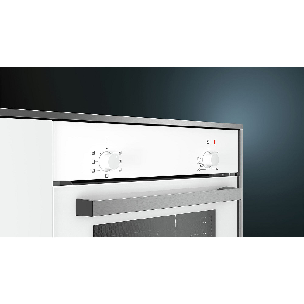 Siemens iQ100 är en pålitlig och lättanvänd inbyggnadsugn i vit design som passar perfekt i moderna kök. Med en standardbredd på 60 cm och en rymlig volym på 66 liter får du gott om plats för både vardagsmat och större bakprojekt. Den rena och tidlösa fronten gör att ugnen enkelt smälter in i kökets övriga inredning.