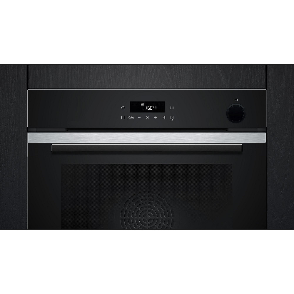 Denna inbyggnadsugn från Siemens iQ300?serie är konstruerad för användare som vill kombinera exakt temperaturkontroll med moderna tillagningsmetoder. Ugnsutrymmet är optimerat för jämn värmefördelning och lämpar sig för allt från bakning och långsam tillagning till krispiga rätter och återuppvärmning.