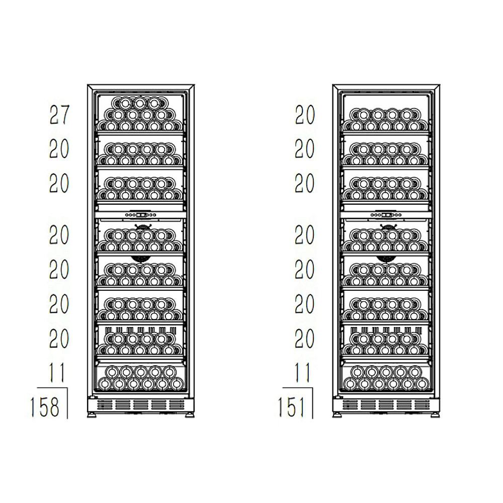 Stor, stilren och lätt att använda. Cavin Arctic Collection 151D är en inbyggd vinkyl som kombinerar generös kapacitet med smart funktionalitet för dig som vill samla och förvara vin på ett snyggt sätt. Med plats för upp till 151 flaskor får du en tydlig överblick över din vinsamling samtidigt som varje flaska är enkel att nå tack vare de utdragbara hyllorna.- Plats för upp till 151 vinflaskor