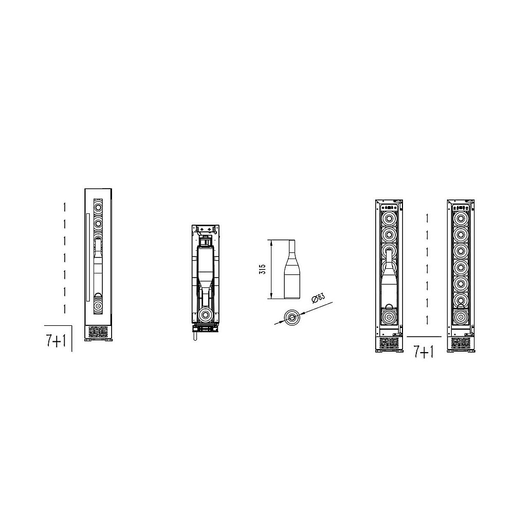 Kapacitet för 8 flaskor, utrustad med 6 fasta plasthyllor