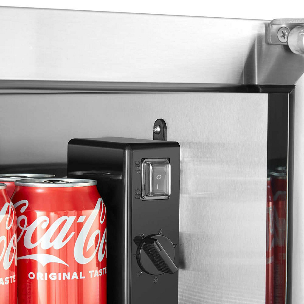 Byggt for att klara utomhusmiljo. Kylskapet har en vattentat design och en trippelglasad dorr som bade haller kylan effektivt och gor att kylen kan sta ute aven vid laga temperaturer. Kompressorkylningen ger stabil drift och gor det mojligt att stalla temperaturen mellan -1 och 10 grader.
