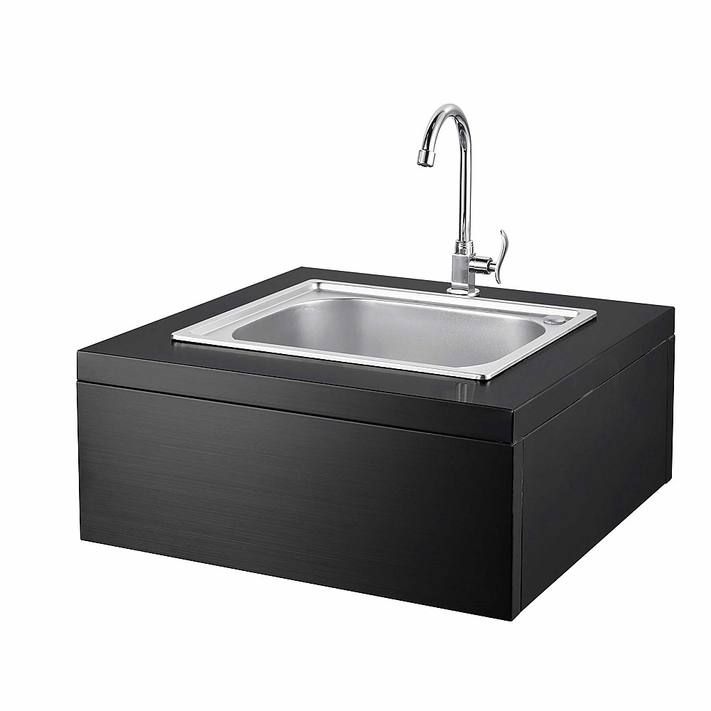 Specifikationer. Integrerbar vaskmodul från Myoutdoorkitchen Nordic Line i svart design. Tillverkad i rostfritt stål 430 SS. Levereras med diskho och vattenkran och monteras på stomme från Nordic Line serien.
