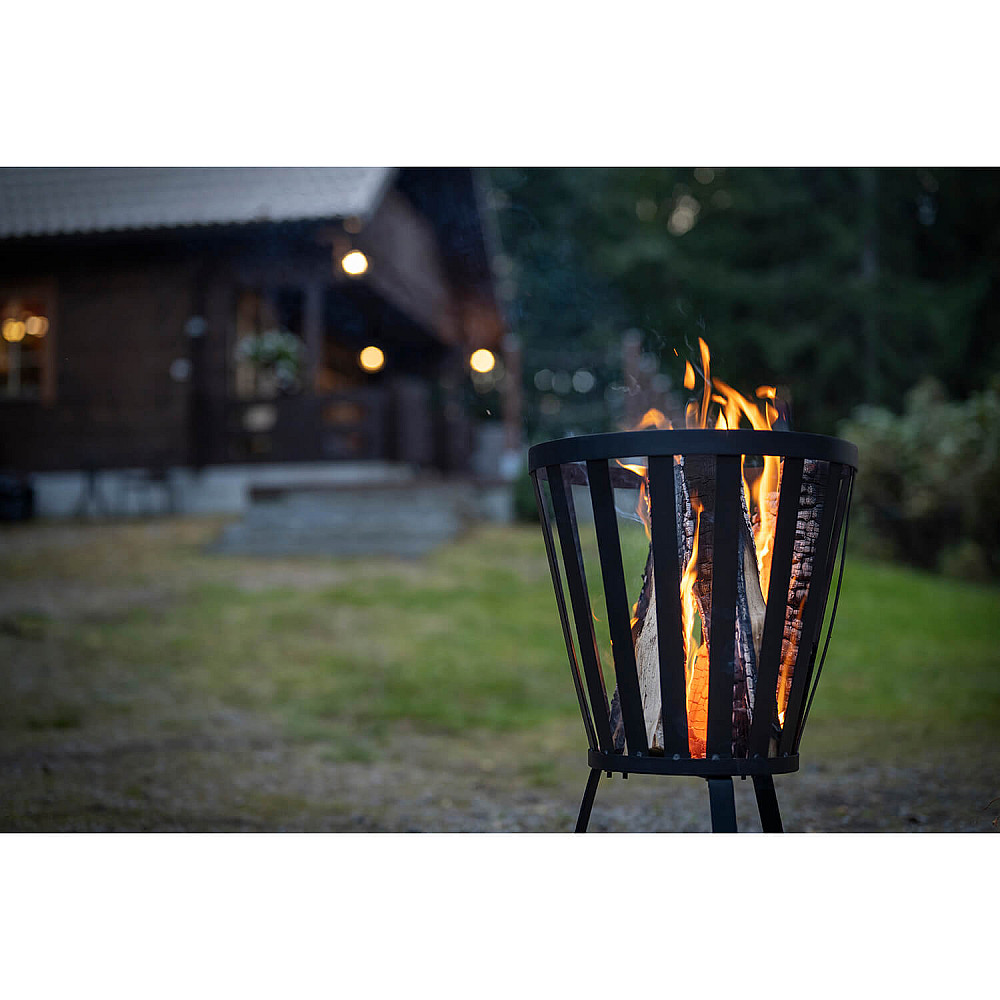 Den hållbara designen gör att eldkorgen står stadigt och klarar många års användning utan att tappa funktion.