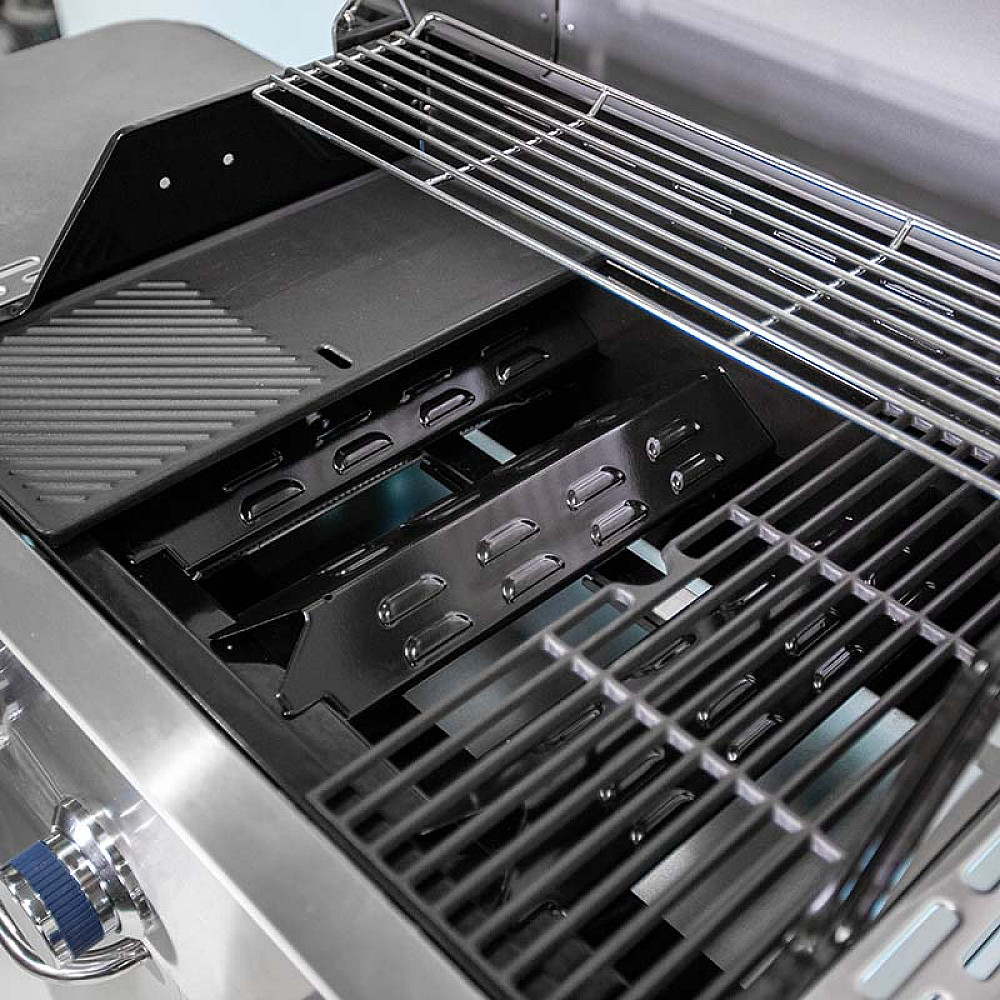 Med tre rostfria brännare och piezotändning är grillen snabbt redo att användas. De individuella reglagen gör det lätt att skapa olika värmezoner för varierad matlagning.