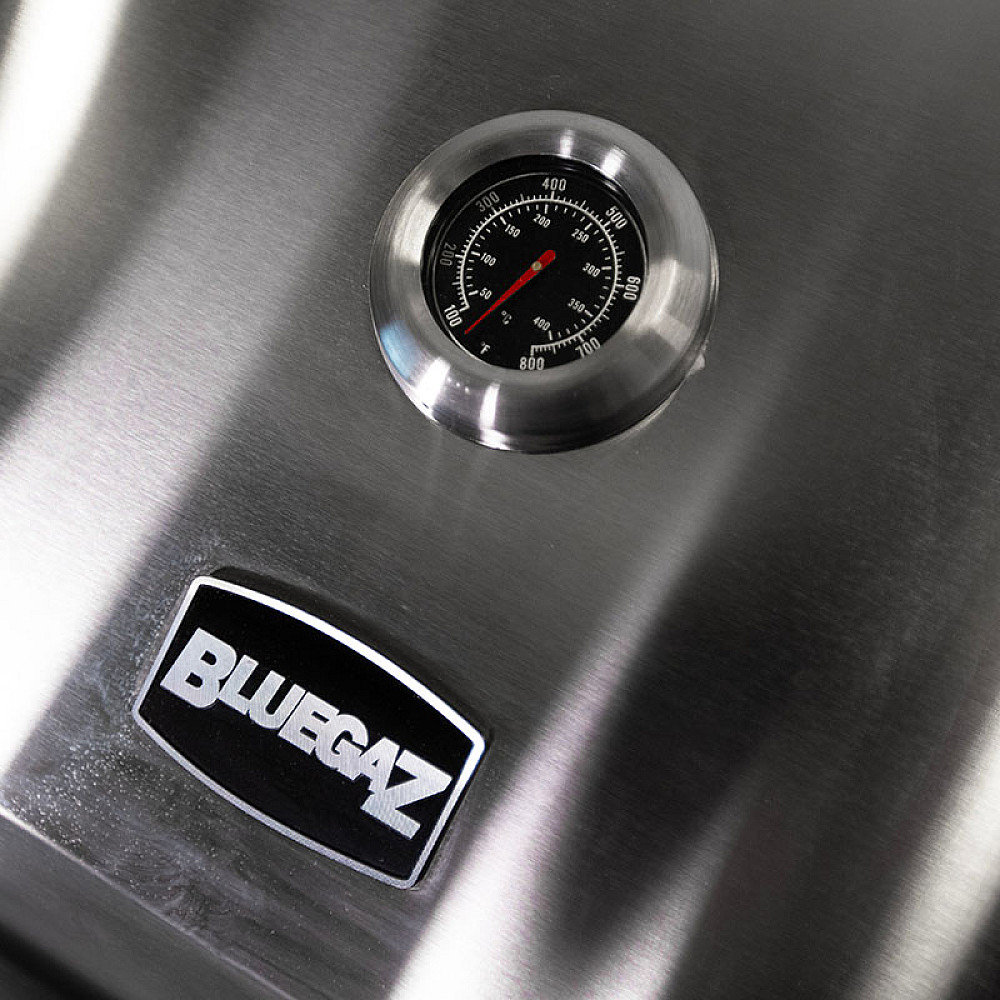 Konstruktionen i rostfritt och pulverlackerat stål ger lång hållbarhet. Det dubbelmantlade locket med termometer säkerställer jämn värme under hela grillningen.
