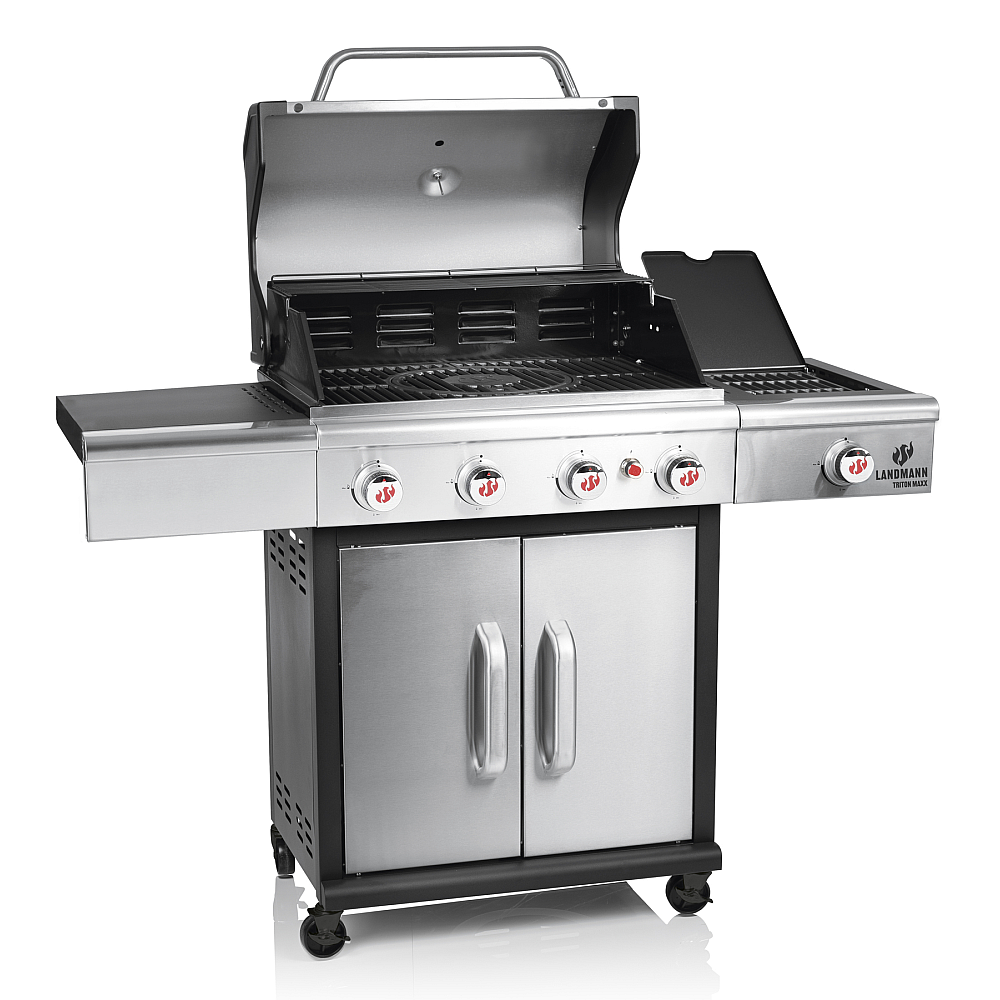 Premiumgrill för maximal prestanda. Landmann Triton 4.1 MaxX i rostfritt stål är en avancerad gasolgrill för dig som vill ha det bästa inom grillning. Med fyra kraftfulla brännare, robust konstruktion och exklusiva funktioner erbjuder den extra hög grillkapacitet för både vardag och fest.