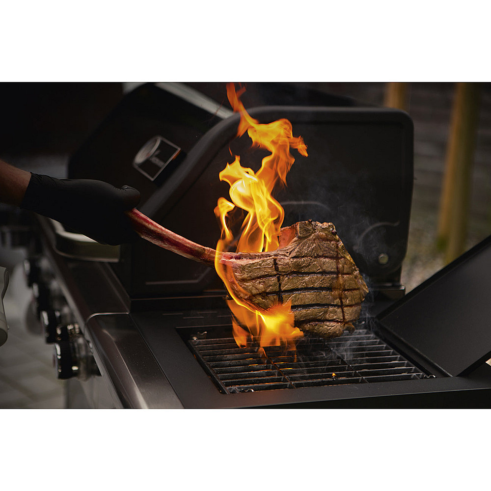 Extrem hetta med infraröd MaxX-zon. Den infraröda sidobrännaren i MaxX-zonen kan nå temperaturer upp till hela 800 °C. Det ger dig möjligheten att skapa en perfekt stekyta på kött och fisk precis som på professionella restauranger samtidigt som insidan förblir saftig och smakrik.