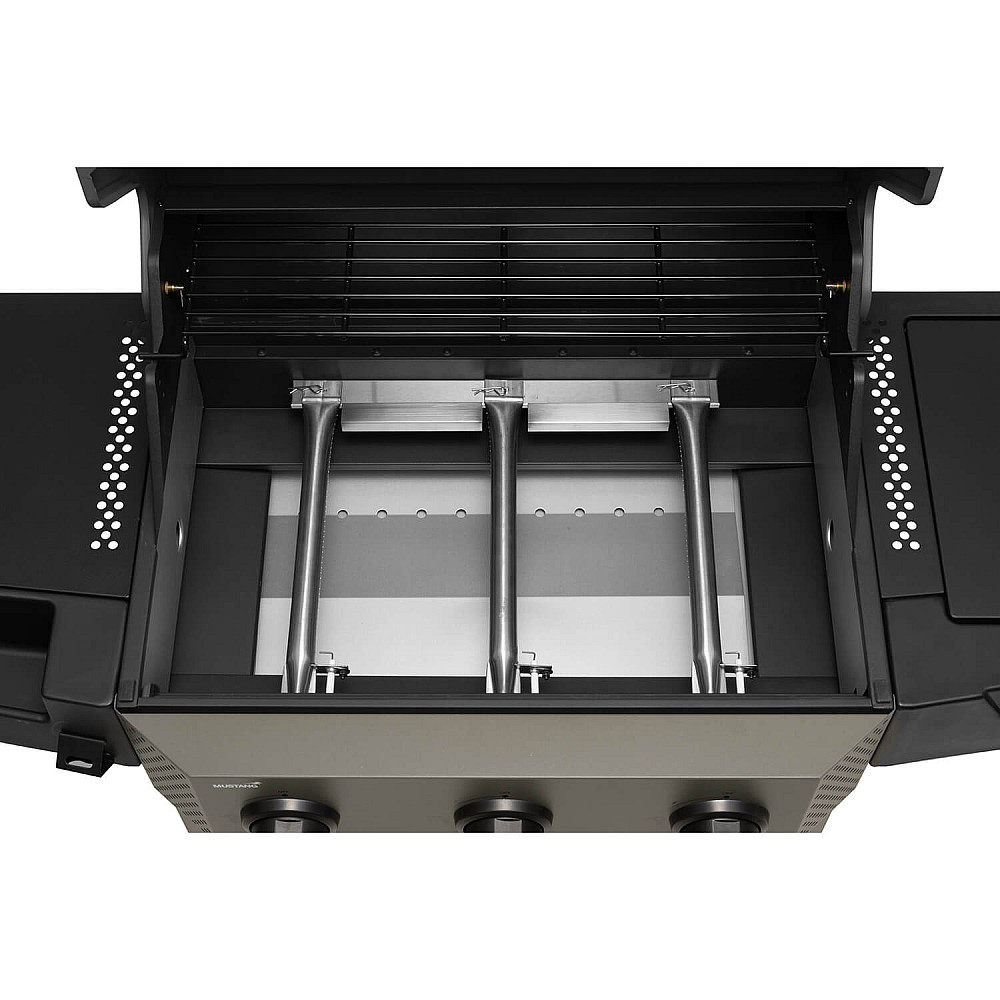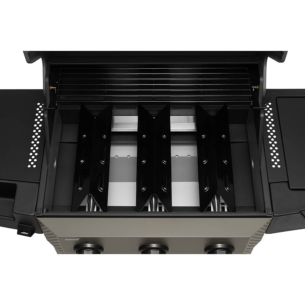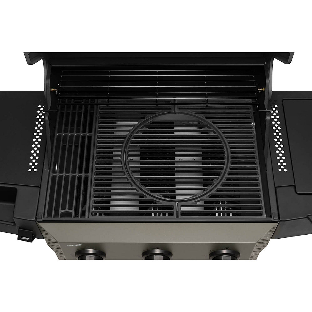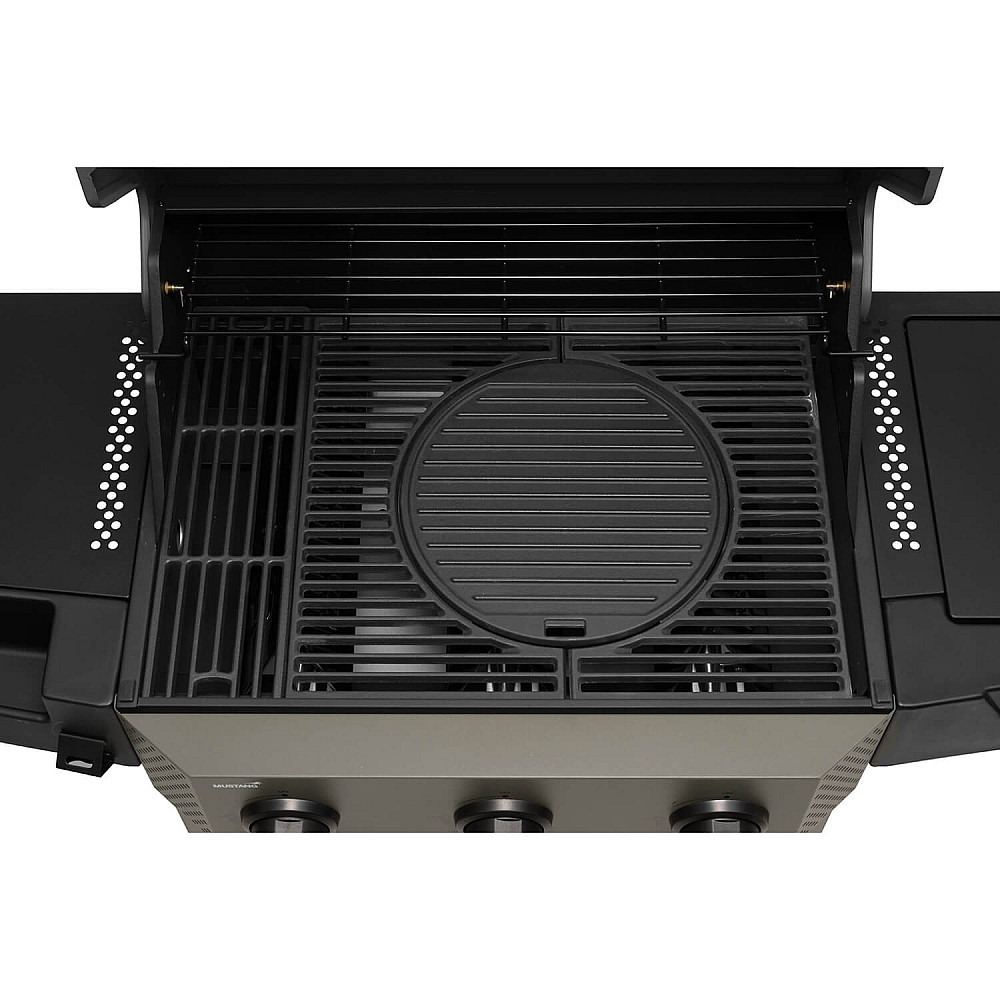 Modern gasgrill för smakrik matlagning Mustang Augusta 3+1 är en elegant grill för dig som vill ha hög prestanda och flexibel design. Med tre huvudbrännare och en extra sidobrännare kan du tillaga flera rätter samtidigt och anpassa värmen efter råvarornas behov.