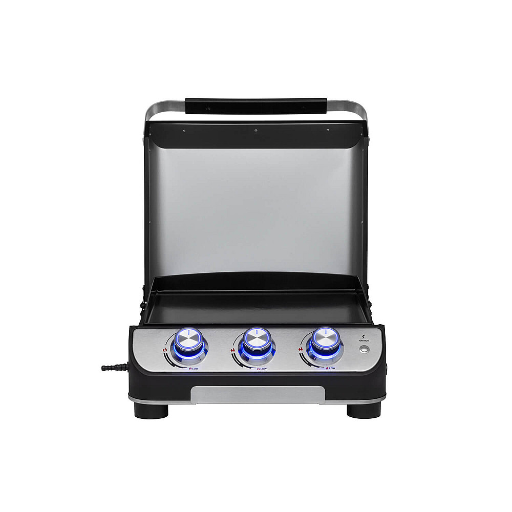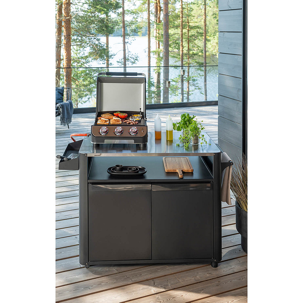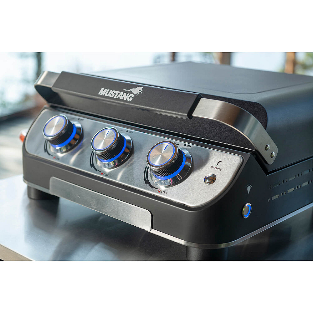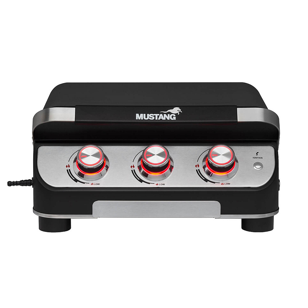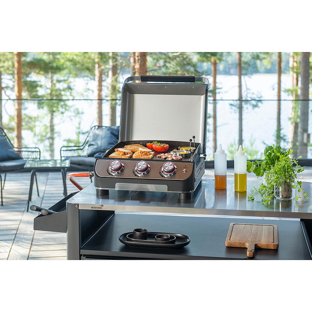 Kompakt grill med hög prestanda Mustang Plate 3 är en bordmodell som ger dig samma precision som en större gasgrill. De tre brännarna skapar en jämn och effektiv värme som passar alla typer av råvaror.