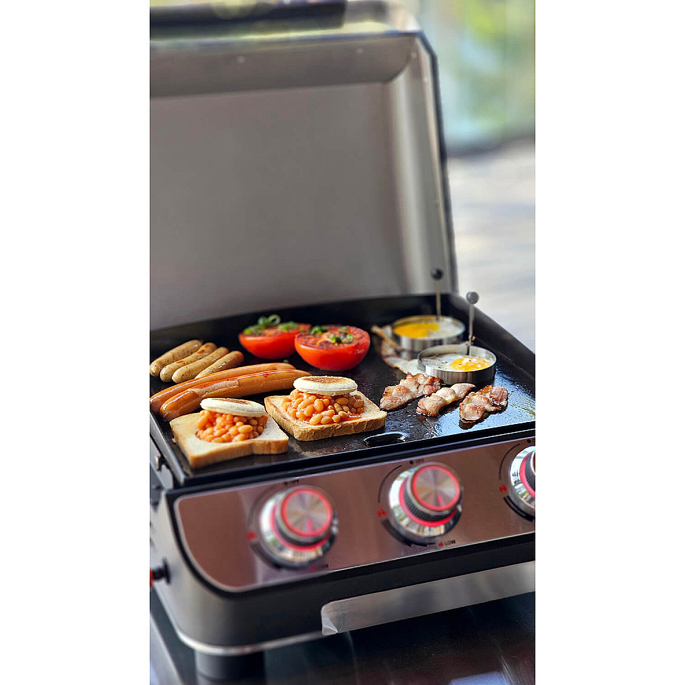Emaljerad plancha för jämn tillagning Planchan sprider värmen effektivt och den släta ytan gör det enkelt att steka, vända och servera med jämnt resultat.