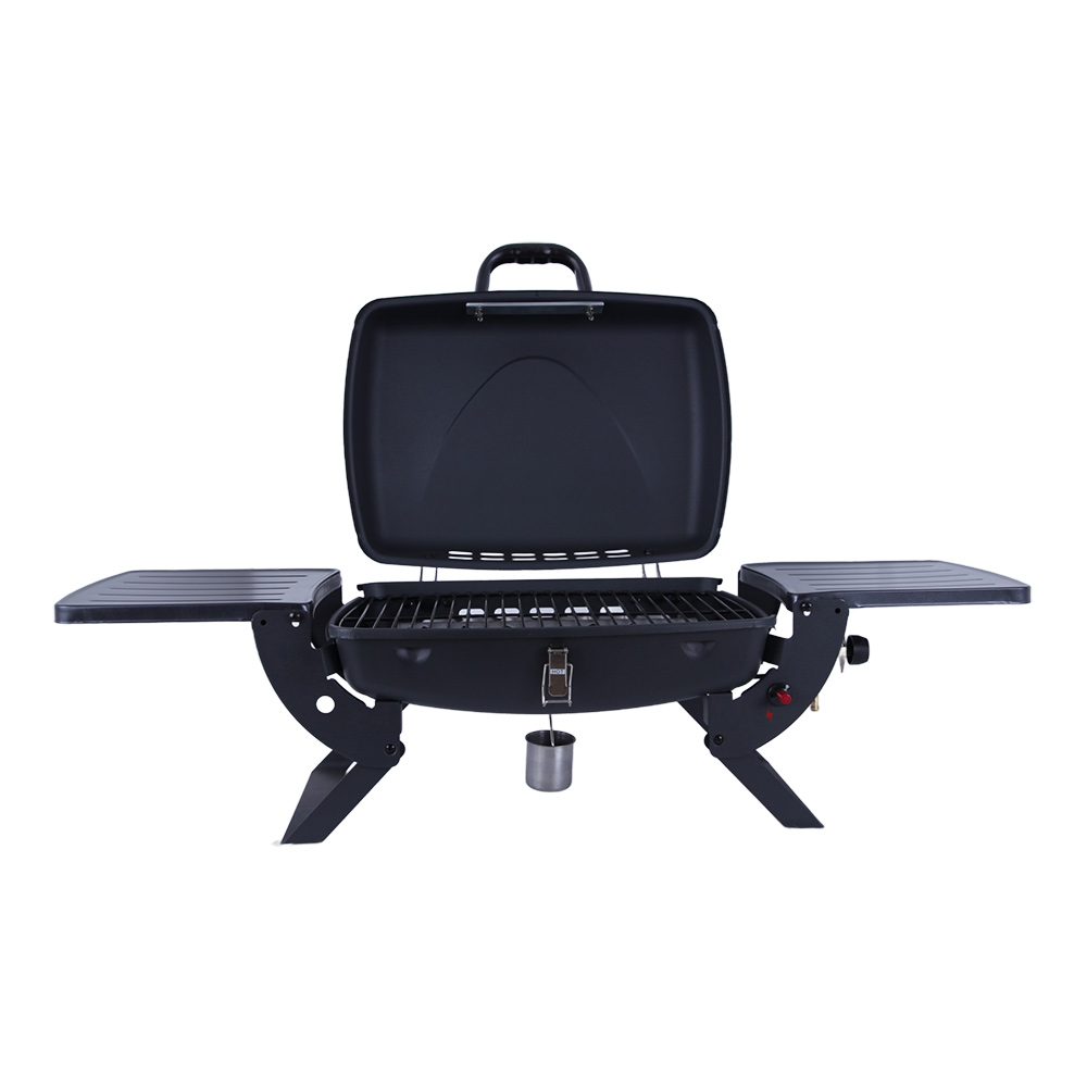 Specifikationer i korthet. TopGrill GBQ-6101 är utrustad med rostfri brännare 3,6 kW, emaljerat grillgaller med grillyta 47 × 33 cm, piezotändning, fällbara sidobord samt pulverlackerat lock. Grillen kan anslutas till både vanlig gasoltub och portabel gasoltub för maximal flexibilitet vid transport och användning.