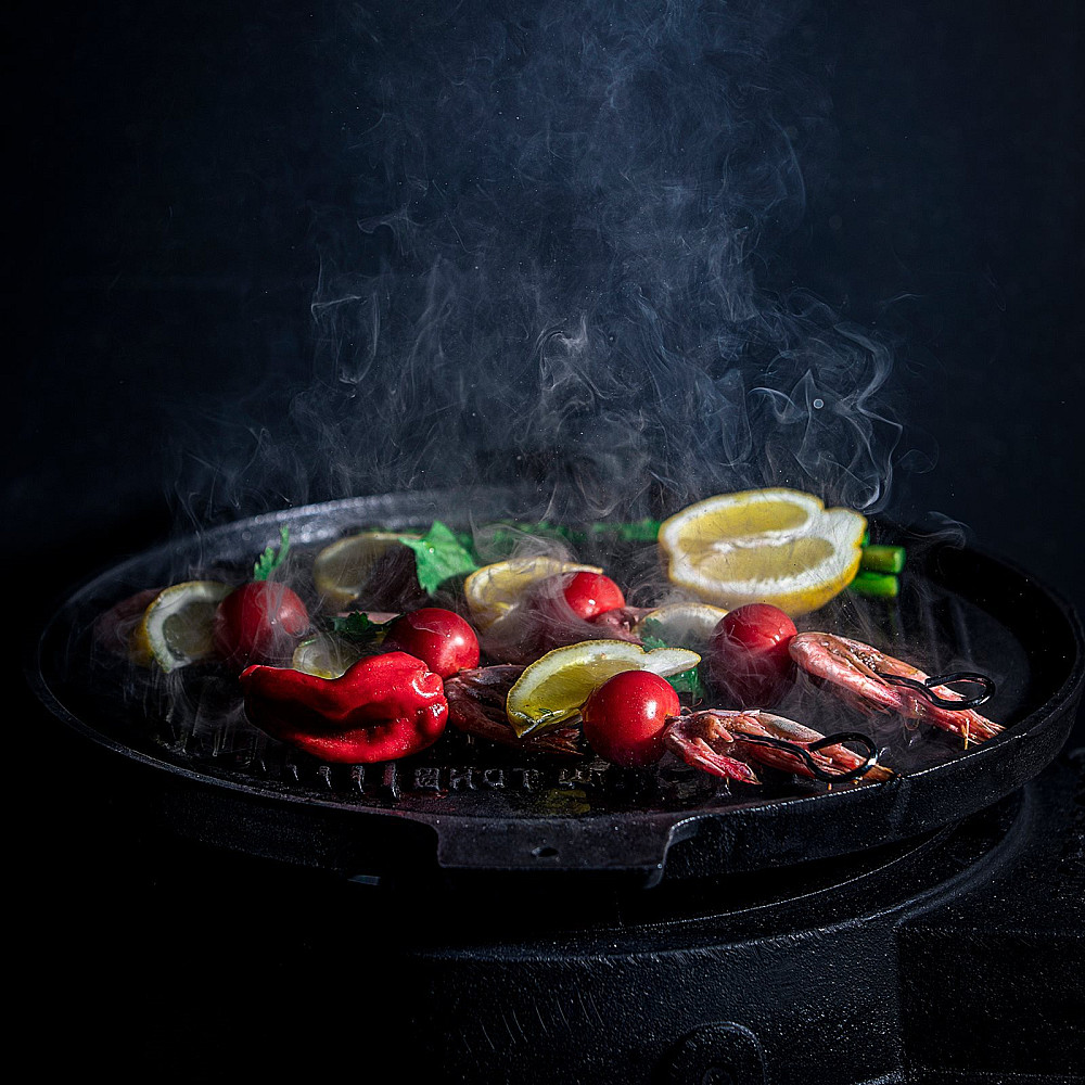 Grillpannan är tillverkad av emaljerat gjutjärn som både håller värmen effektivt och tål hög temperatur. Den värms upp på bara en minut, vilket gör den extra smidig när du vill laga mat snabbt och med professionellt resultat.