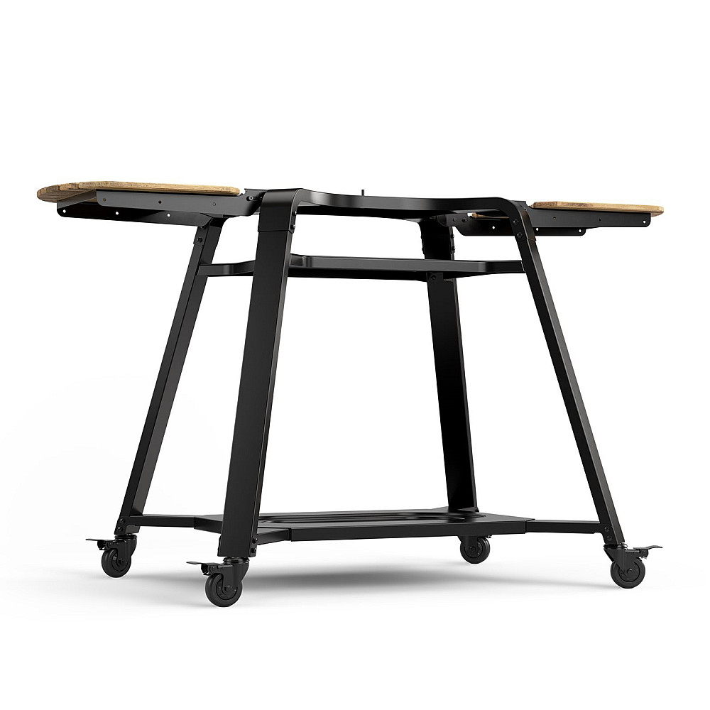 Stativet är utrustat med två fällbara sidobord i vackert akaciaträ, vilket ger extra arbets- och serveringsyta när du behöver det. Under ugnen finns ett stort förvaringsutrymme som är idealiskt för gasflaskan eller andra tillbehör du vill ha nära till hands.