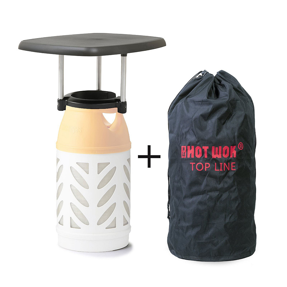 När du använder din grill eller gasolbrännare tar gasolflaskan ofta upp onödigt utrymme. Med avlastningsbordet Top Line från HOT WOK kan du istället utnyttja flaskan smart och förvandla den till ett stabilt sidobord som ger extra arbetsyta vid matlagningen.