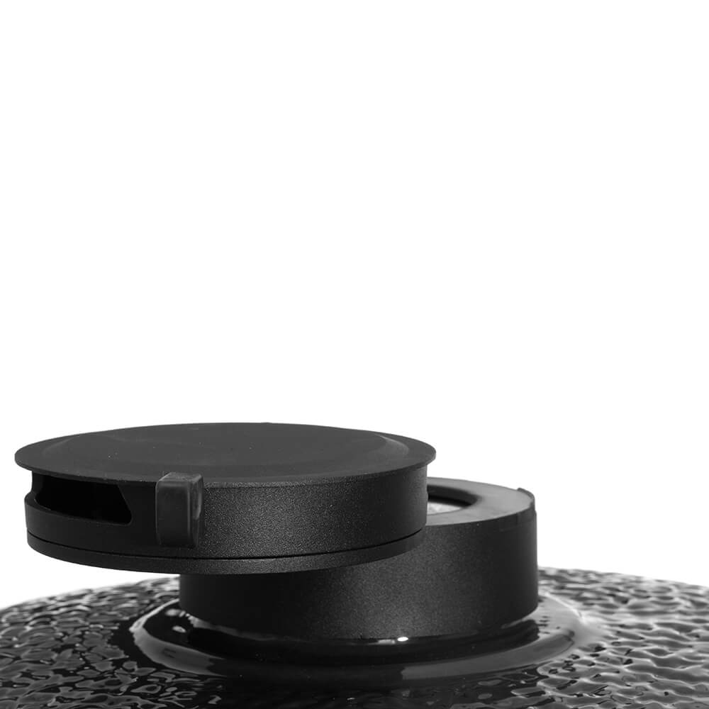 Grillen är utrustad med en förbättrad övre ventil i gjutjärn som ger mycket noggrann dragkontroll. Den nedre ventilen har ett skyddsnät som ökar säkerheten och förbättrar luftflödet mot grillkolen.