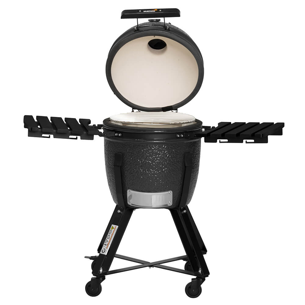 Mustang Kamado M ger en jämn och stabil värme som är perfekt för slow cooking, rökning och traditionell kamadogrillning. Den keramiska konstruktionen behåller värmen effektivt och ger en optimal miljö för smakfull matlagning.