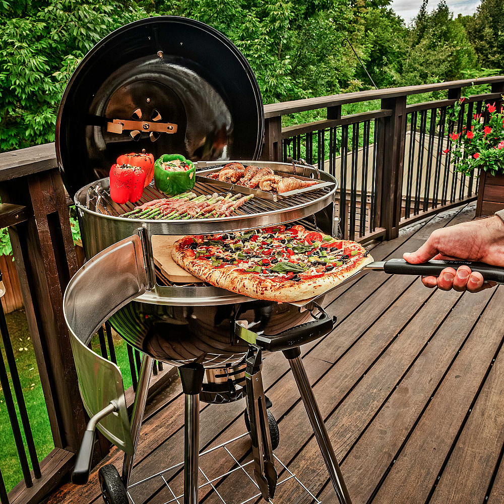 För dig som vill utveckla grillningen ytterligare kan Crown Kettle Premium 57 kompletteras med Broil King Culinary Ring. Med detta tillbehör blir det möjligt att grilla indirekt, baka, woka eller röka direkt på kolgrillen, vilket ger större flexibilitet och fler användningsområden.