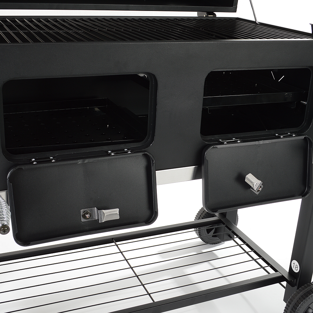 - Dubbla påfyllningsluckor för kol, briketter och rökspån