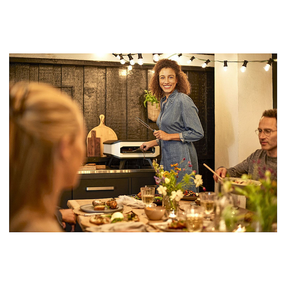 Digital kontroll för exakt temperatur Ugnen är utrustad med en digital termostat som gör det möjligt att ställa in och övervaka baktemperaturen med hög precision. Den justerbara topvärmen gör det enkelt att anpassa gräddningen för olika pizzastilar.