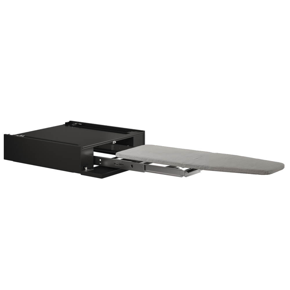 Välj ett sorteringshyllplan som alltid finns där när du behöver det. HI150G är perfekt för dig som vill maximera utrymmet mellan maskinerna och samtidigt få en diskret, integrerad strykbräda i din tvättstuga.