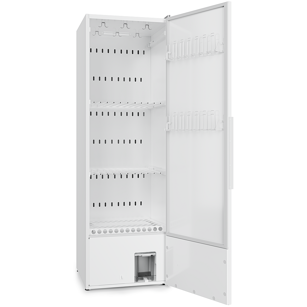 Detta torkskåp erbjuder snabb och skonsam torkning med hjälp av modern värmepumpsteknik. Den låga energiförbrukningen och det effektiva torksystemet gör det till ett smart val för både hem och verksamheter som vill spara energi och tid.