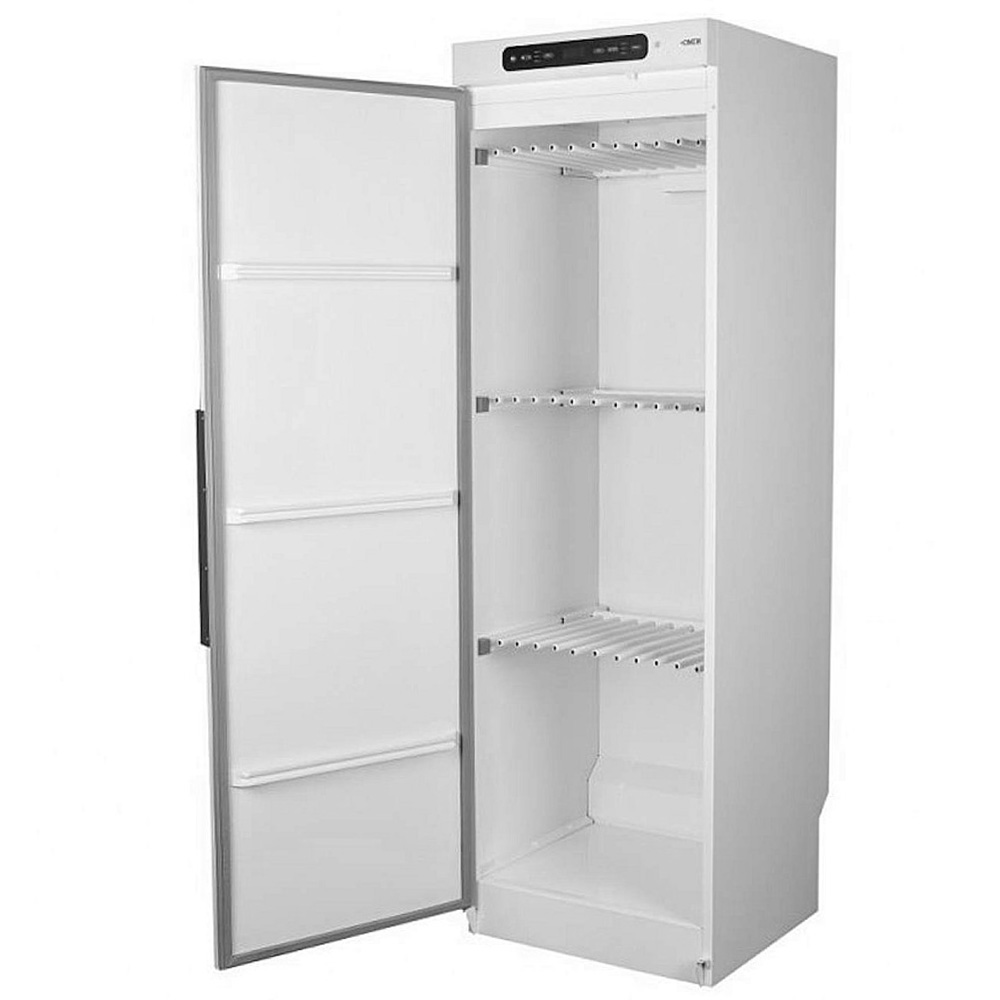 Det användarvänliga torkskåpet erbjuder digital manöverpanel, elektronisk programstyrning och frånluftssystem för effektiv ventilation. Med justerbara fötter, valbar dörrhängning och tillgängliga höjder på 1700 eller 1900 mm passar det enkelt in i både tvättstugor och professionella miljöer.