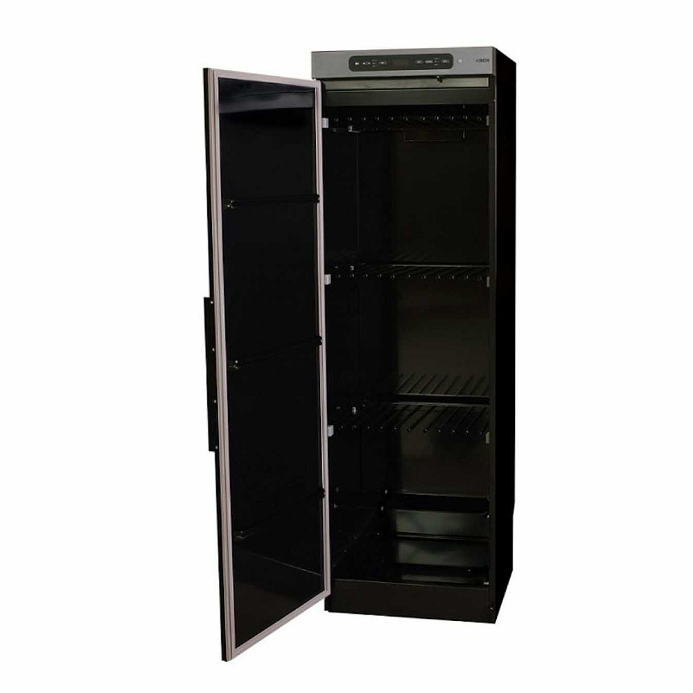 Det robusta skåpet är utrustat med digital manöverpanel, elektronisk programstyrning och frånluftssystem för effektiv ventilation. Med vänsterhängd dörr och en stilren svart finish är modellen ett modernt tillskott i både privata och gemensamma tvättutrymmen.