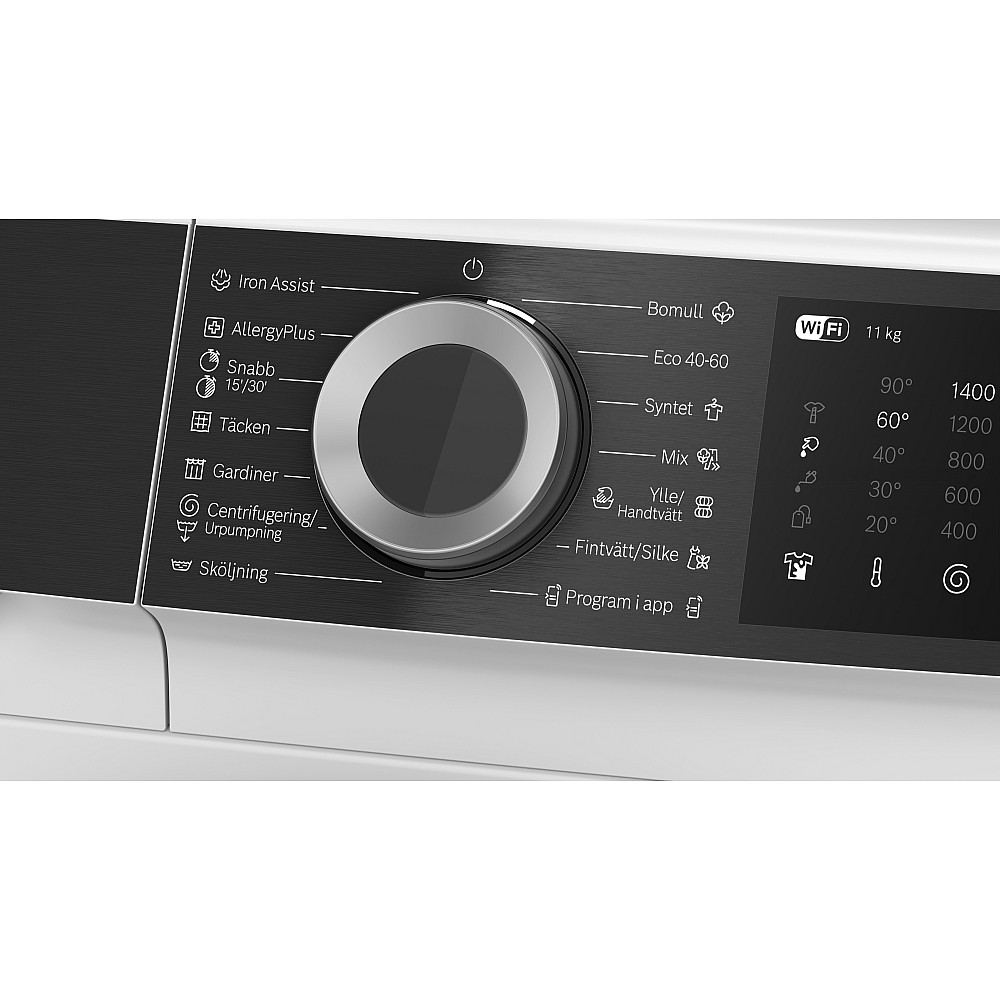 Rymlig och smart tvättmaskin för moderna hem. Bosch Serie 6 WGK264ZLSN är en frontmatad tvättmaskin med 11 kg kapacitet och 1400 varv per minut som kombinerar hög prestanda med energieffektiv drift och smarta funktioner. Den stora kapaciteten gör den särskilt praktisk för större hushåll eller för dig som vill tvätta mer på en gång.