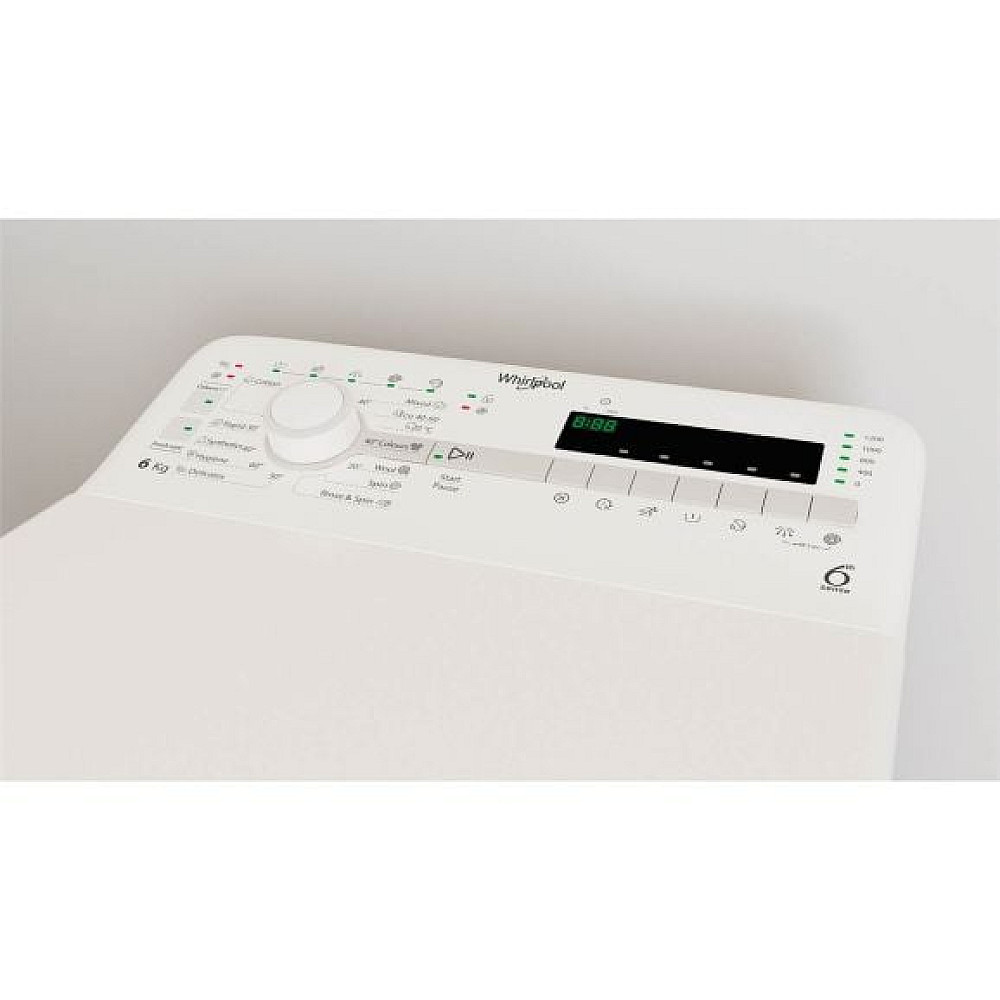 Sensorbaserad processkontroll. Whirlpool TDLR 6240SS EUN är utrustad med 6TH Sense teknologi som arbetar med kontinuerlig datainsamling under hela tvättcykeln. Genom att mäta tvättmängd och textilrespons i realtid justeras vattennivå temperaturprofil och programlängd dynamiskt. Detta säkerställer stabil rengöringsprestanda med reducerad energi och vattenförbrukning oavsett last.